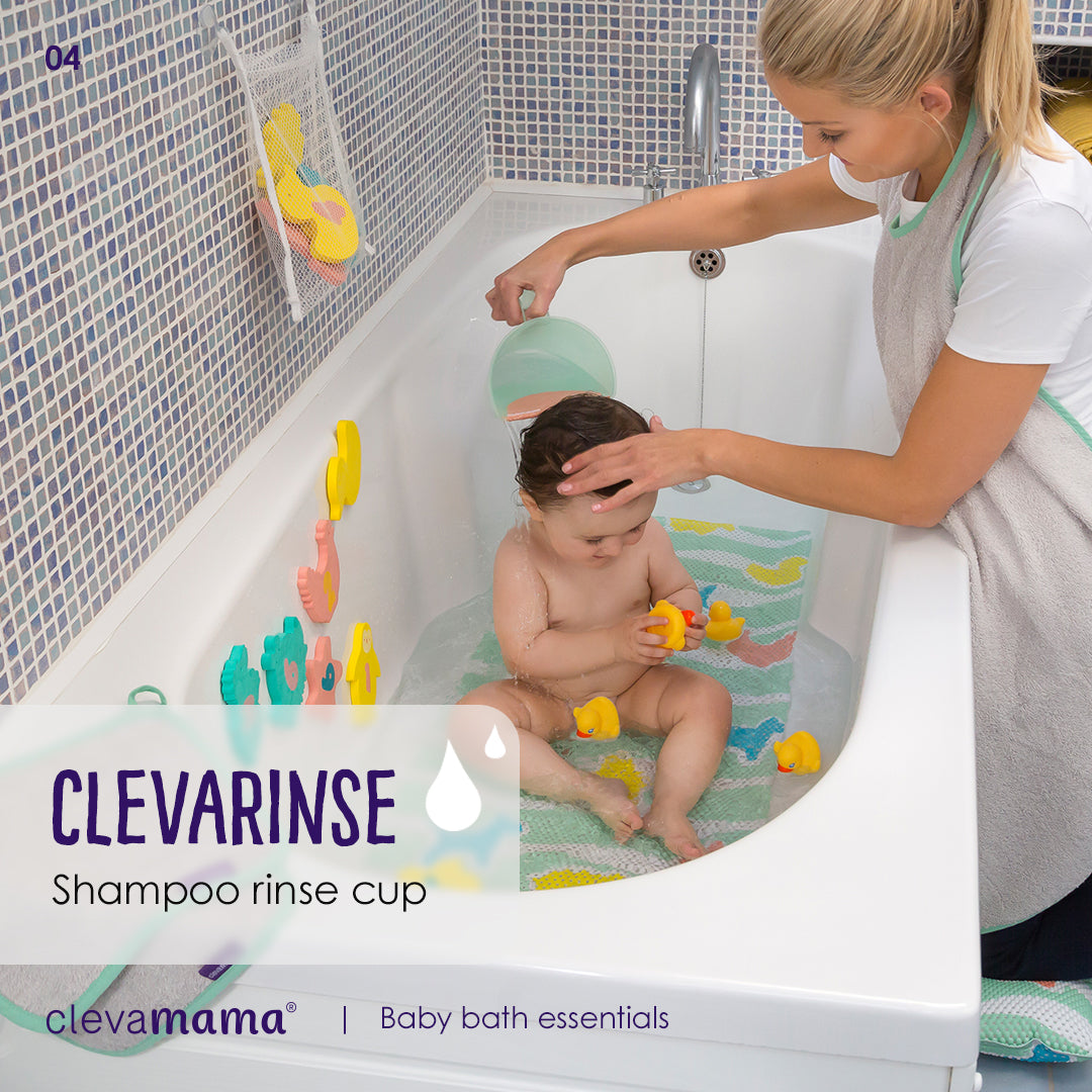 The ClevaMama® ClevaRinse Baby Bath Shampoo Rinse Cup is designed to make washing your baby’s hair simple and stress-free. With its soft flexible edge, it gently forms to your baby’s forehead, keeping soap and water out of their eyes and ears — for happy babies and relaxed parents!