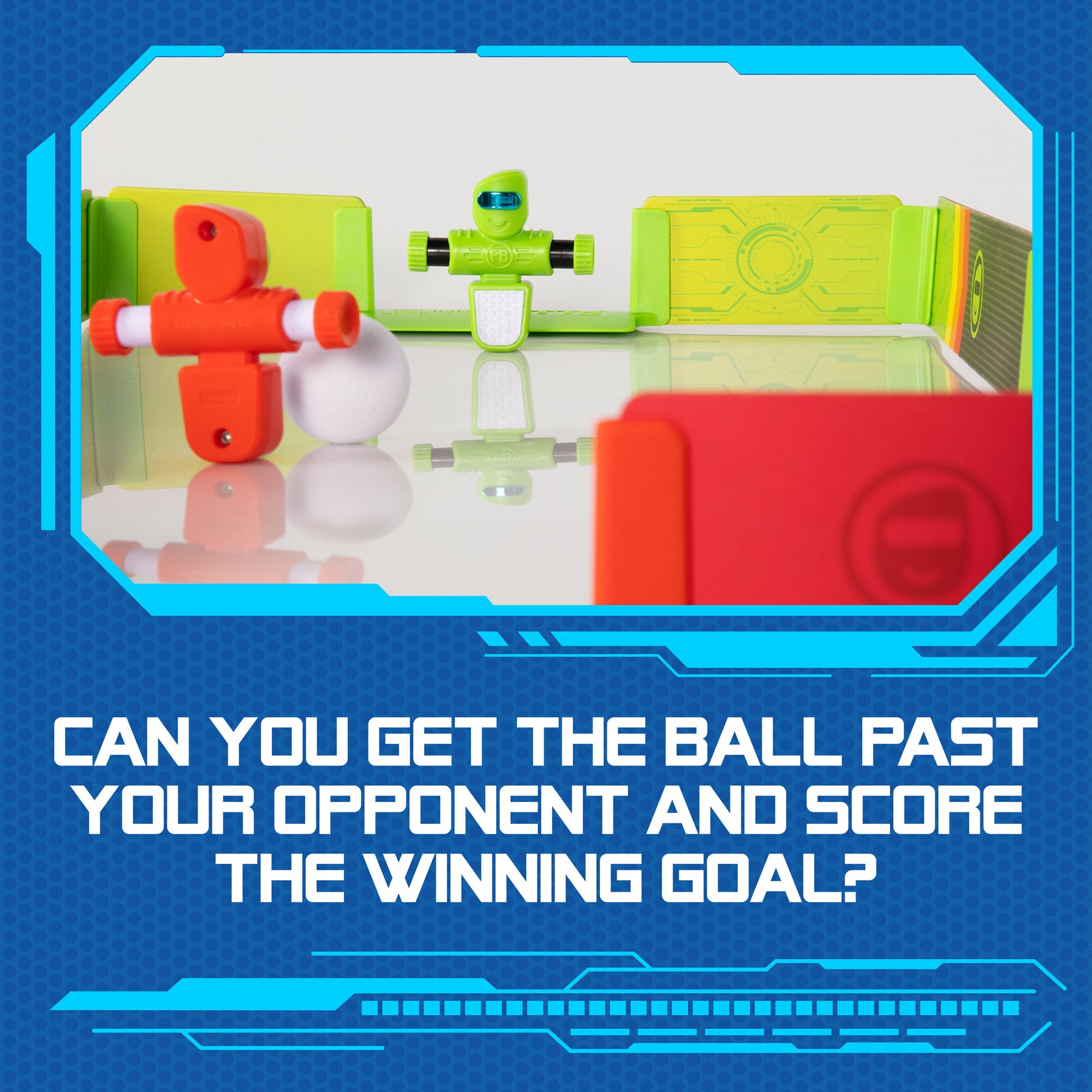 • Squeeze the arms of the Foosbots to make them spin and kick the ball