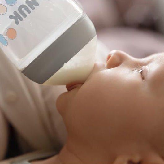The NUK Anti-Colic vent and a choice of three different teats ensure the food flows smoothly.